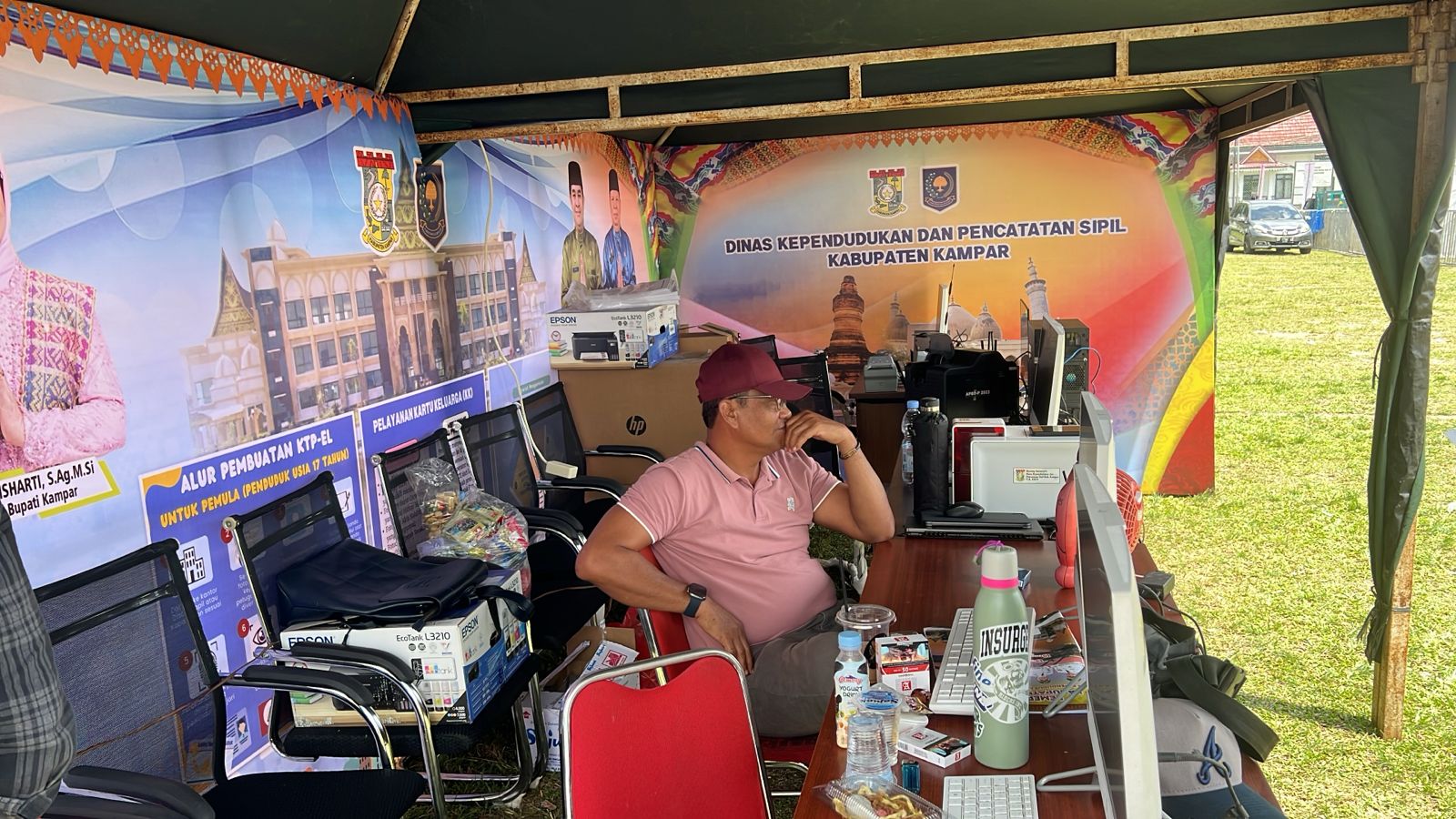 Dalam Kegiatan Tersebut Dinas Kependudukan dan Pencatatan Sipil Ikut Andil dalam Memeriahkan Pesta Rakyat "Kampar Dihati" dengan mendirikan stand administrasi kependudukan gratis di lapangan Merdeka.