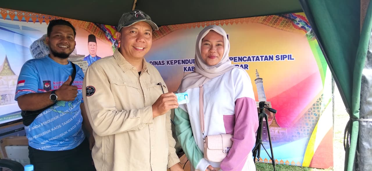 Penyerahan KTP EL oleh Kabid PIAK DEDE FIRMANSYAH, S. Kom pada Pelayanan Hari Jadi Kab. Kampar ke 76 di Lapangan Merdeka 07 Februari 2026
